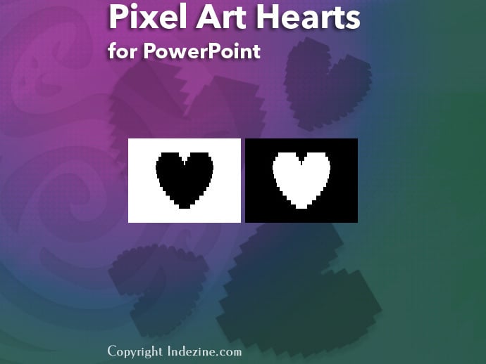 - 4 pixel-art heart shapes (vector shapes) contained within PowerPoint slides, so that you just copy and paste within your slides.