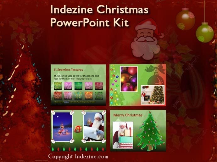 PowerPoint Christmas Theme / Template: The Indezine Christmas Theme is a magical file that lets you create a container presentation! You will find the Christmas Kit from Indezine.THMX file in the folder that contains the kit –- double-click the THMX file to start a new presentation based on this Theme!